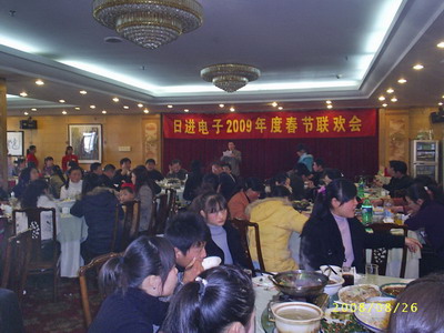 在新春佳節來臨之際,日進公司2009年聯歡會在三河酒家順利召開,并取得圓滿成功。首先由公司總經理劉總致辭,劉總用敬各位員工三杯酒來表達主題,之后開始了黃梅戲表演、謎語、小游戲等節目,在整個就餐過程中穿插著抽獎活動,抽獎活動把整個酒會推向一個個高潮,整個聯歡酒會氣氛熱烈,春意泱泱。